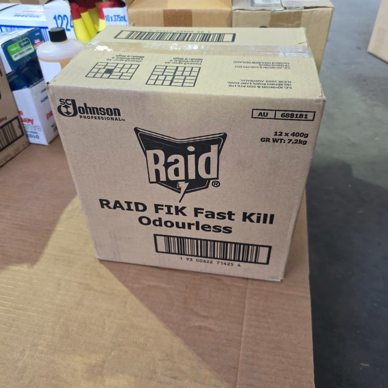 Cleaning supplies, raid fik fast kill odourless, cleaning liquid, glass all surface cleaner, Aerogard roll on and more
