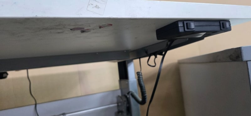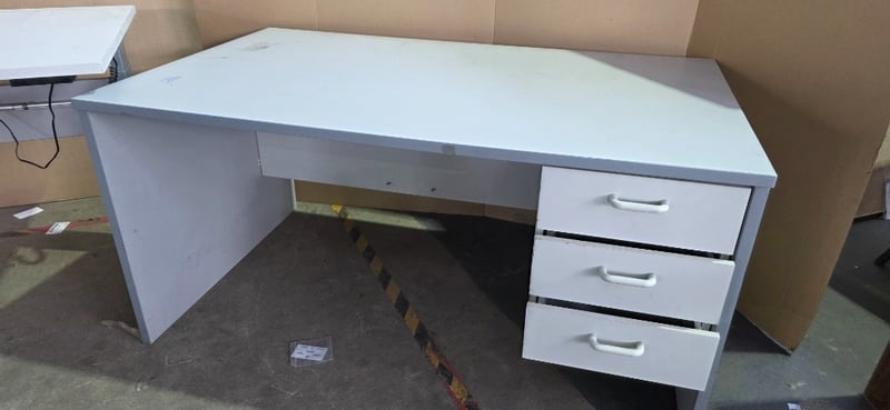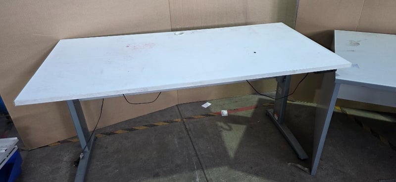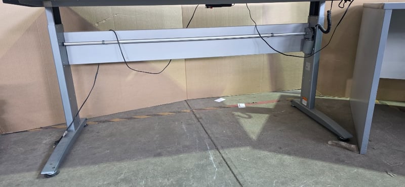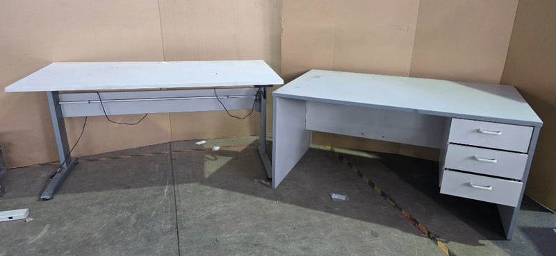 Office desks, electric adjustable office desk includes office desk with 3 drawers Inspection recommended Sold as lot