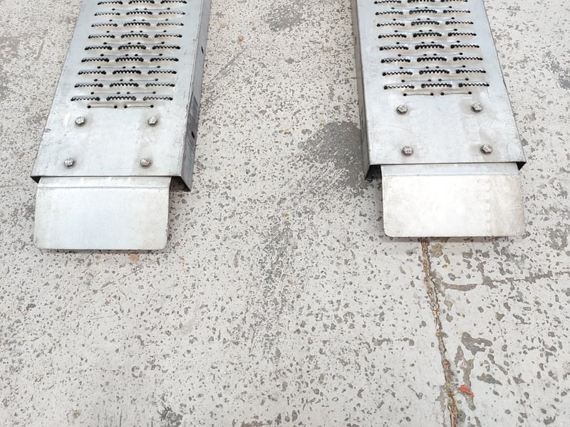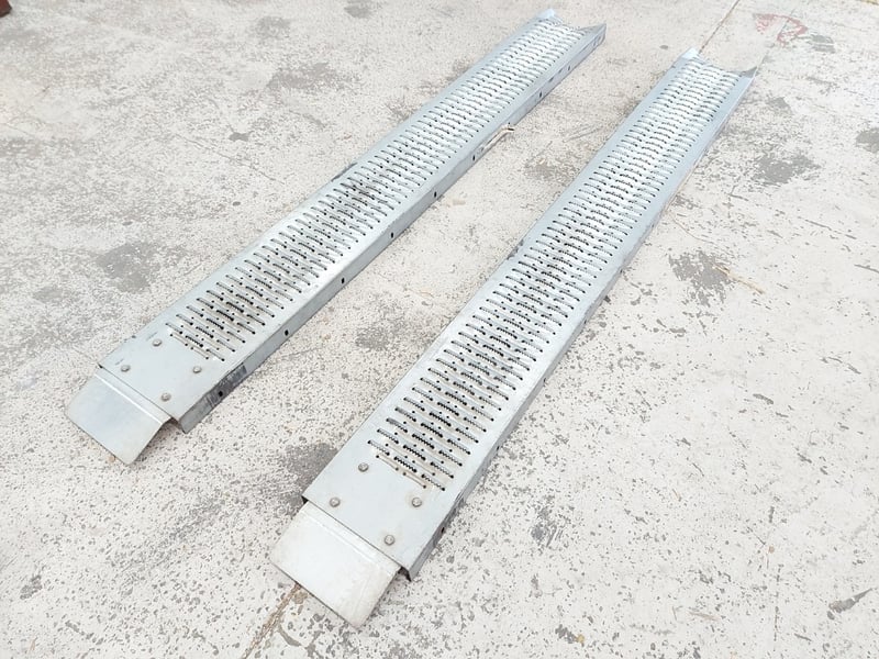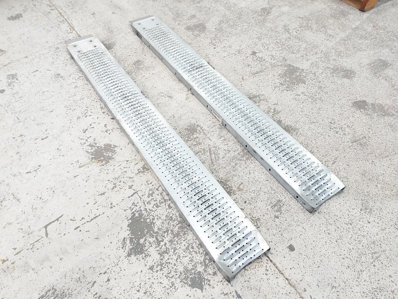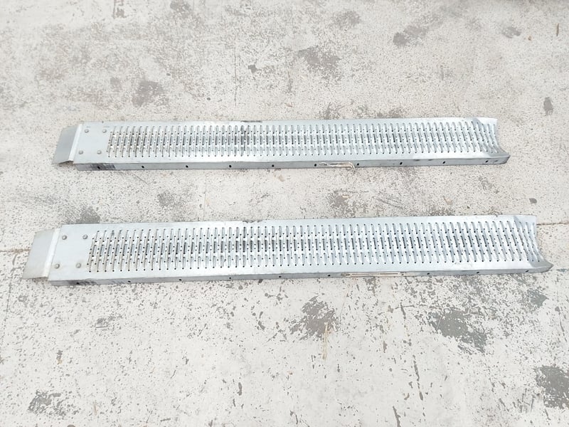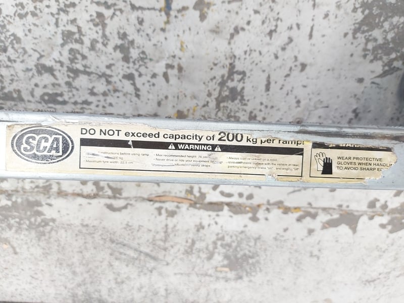 Pair of SCA Steel Loading / Car Ramps – 200kg Capacity per Ramp Dimensions: 5cmH x 193cmW x 23cmD Note: dent, refer to photo