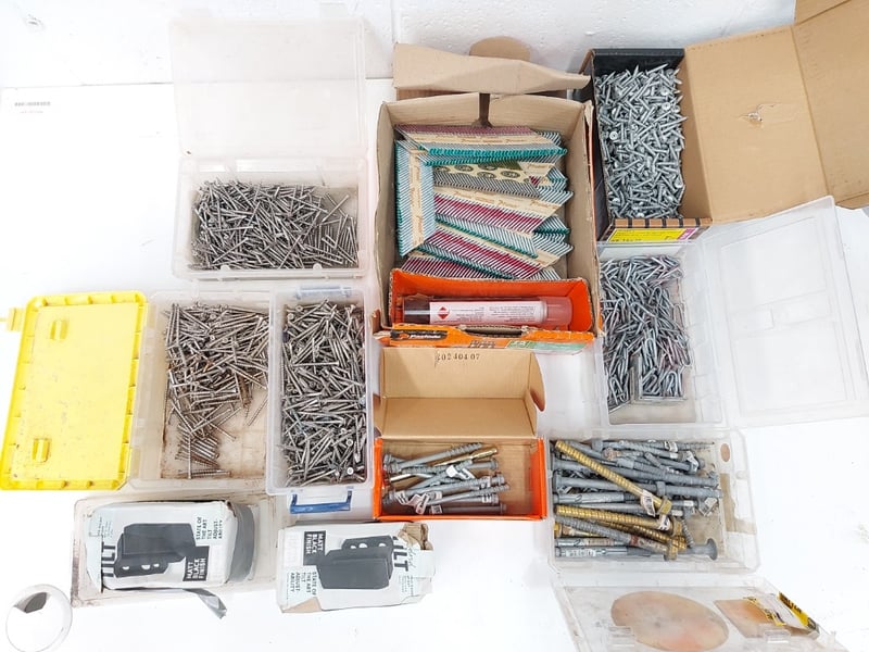Assorted Fixings & Hardware Lot – Screws, Nails, Clips & Accessories Sold as lot