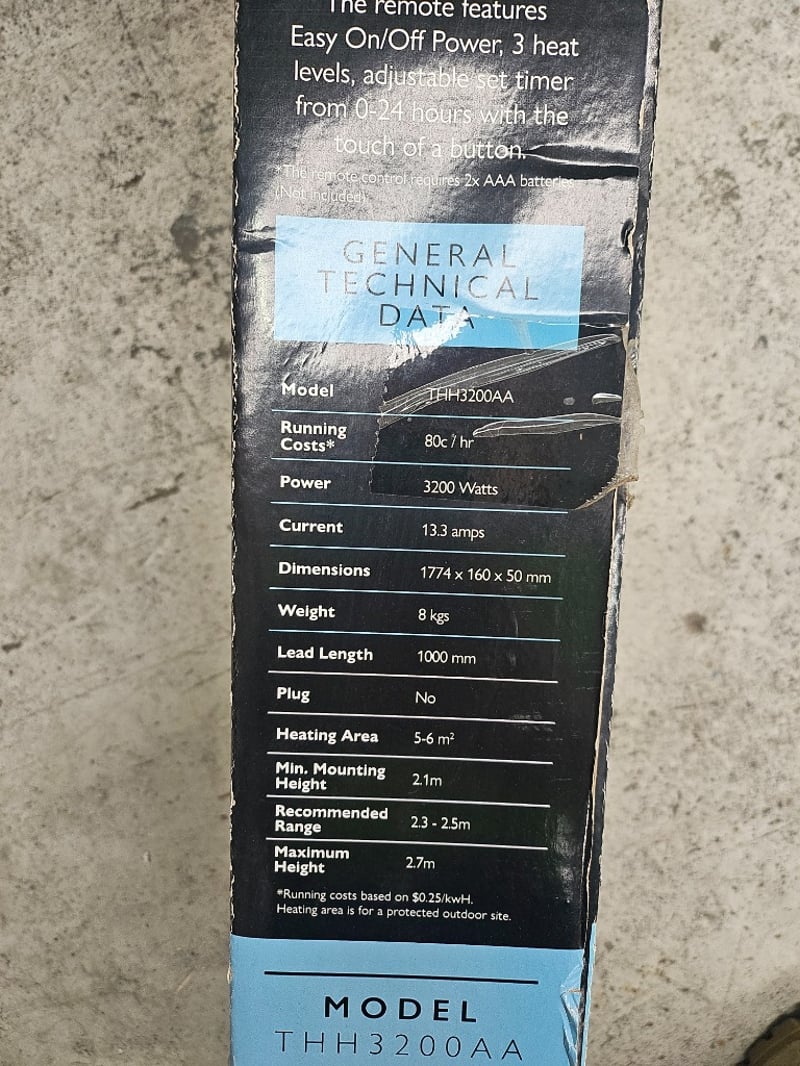 Heatstrip Classic, Model No: THH3200AA for an indoor/outdoor heater
