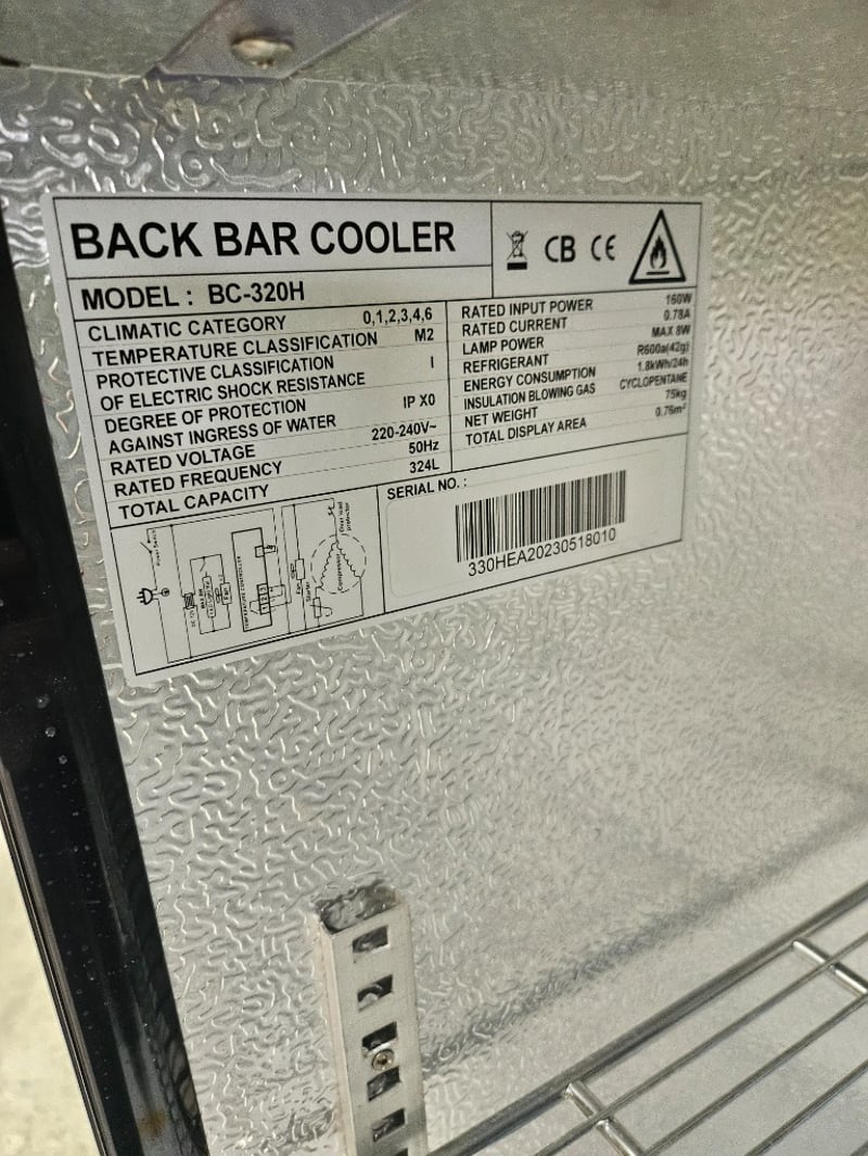 Under Bench Fridge, Model: BC-320H, 3 door, 2 shelf 870H x 500D x 135W