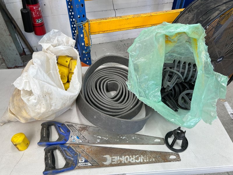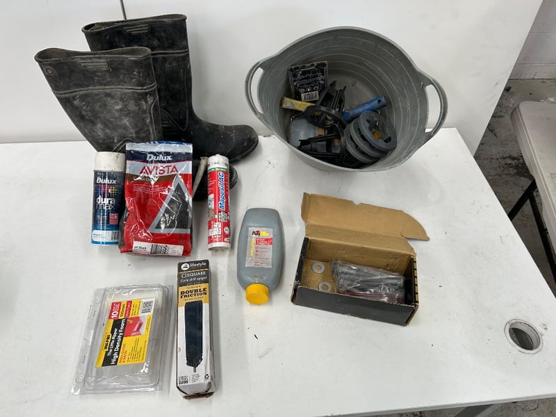 Handsaws, gumboots, foam belt, fittings and more. Sold as lot