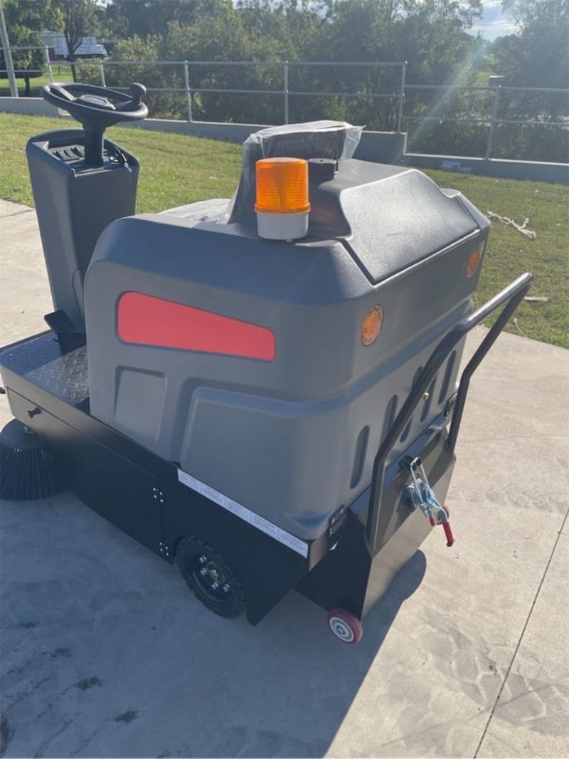 Unused 2025 Electric Ride On Sweeper, Model: SW1250, Battery: 48V 67Ah, Cleaning Width: 1250mm, Bin Capacity: 80L, Water Tank Capacity: 10L, Floor Coverage: 4800m2/h, Battery Run Time: >3Hrs, Fitted with Front Dust Suppression Sprayers, Comes with:, Charger, Tool Kit, Operating Weight: 375Kgs, Shipping Dimensions: 1500mm x 1250mm x 1300mm, CE MarkedLocation: Townsville, QLDStock No. 169402