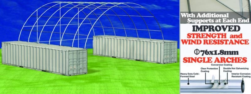 Unused Heavy duty 40ft Container Shelter with End wall, Model: C4040E, 40ft wide x 40ft long x 15ft High, Heavy duty PVC fabric, galvanised tube frame, Approximate Shipping Dimensions: 2430mm L x 740mm W x 1280mm H, Approximate Weight: 1150kgLocation: Townsville, QLDStock No. 174531