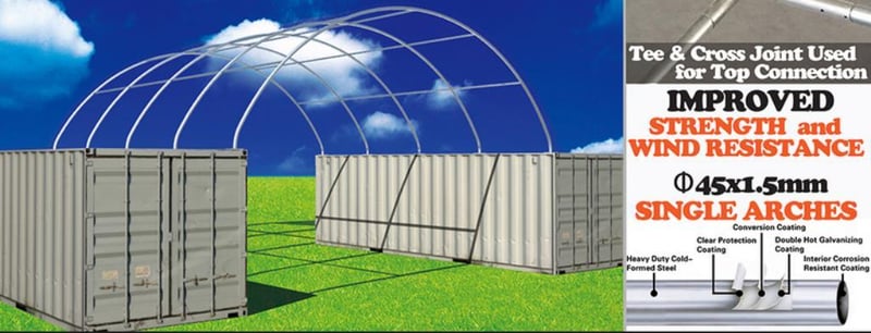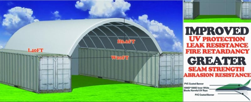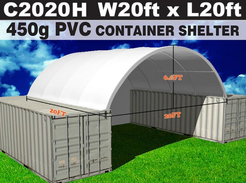 Unused Heavy duty 20ft Container Shelter with End Wall, Model: C2020H, 20ft wide x 20ft long x 6ft 6in high container shelter, heavy duty PVC fabric, galvanised tube frame, Approximate Shipping Dimensions: 1930mm L x 740mm W x 360mm H, Approximate Weight: 226kgLocation: Townsville, QLDStock No. 174470