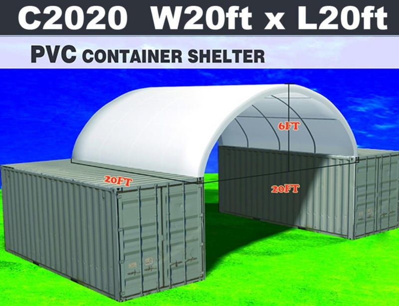 Unused Heavy duty 20ft Container Shelter, Model: C2020, 20ft wide x 20ft long x 6ft 6in high container shelter, heavy duty PVC fabric, galvanised tube frame, Approximate Shipping dimensions: 1930mm L x 740mm W x 340mm H, Approximate Weight: 220kgLocation: Townsville, QLDStock No. 174480
