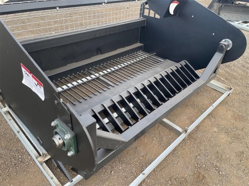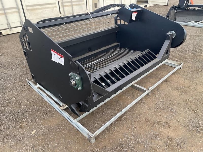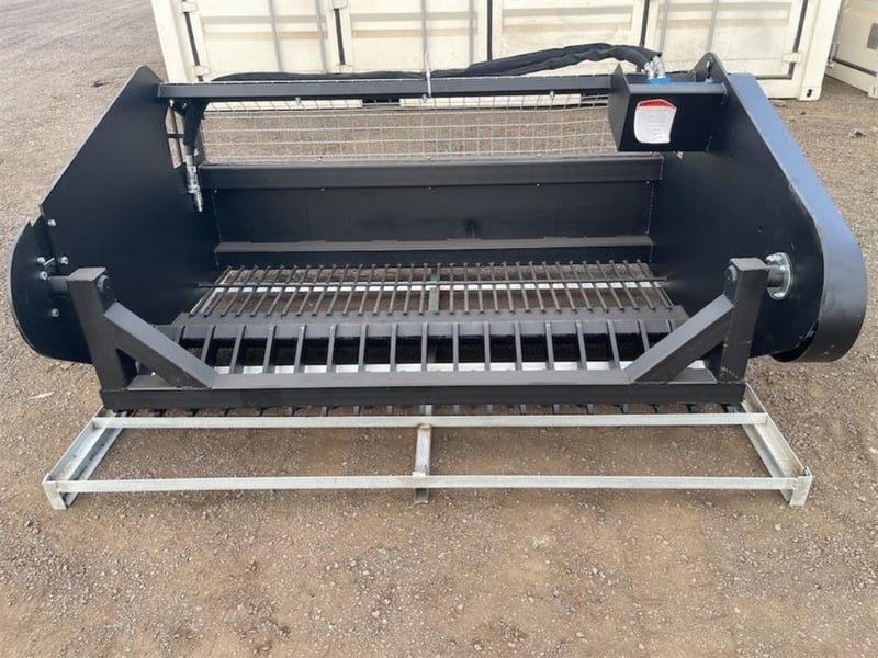 Unused Rock Picking Bucket to Suit Skid Steer, Screening Width 1.93m, Shipping Dimensions: 2075mm L x 1590mm W x 1090mm H, Weight: 681Kgs, Location: Townsville, QLDStock No. 174331