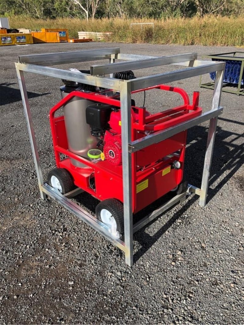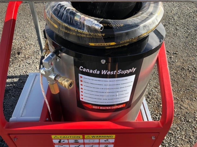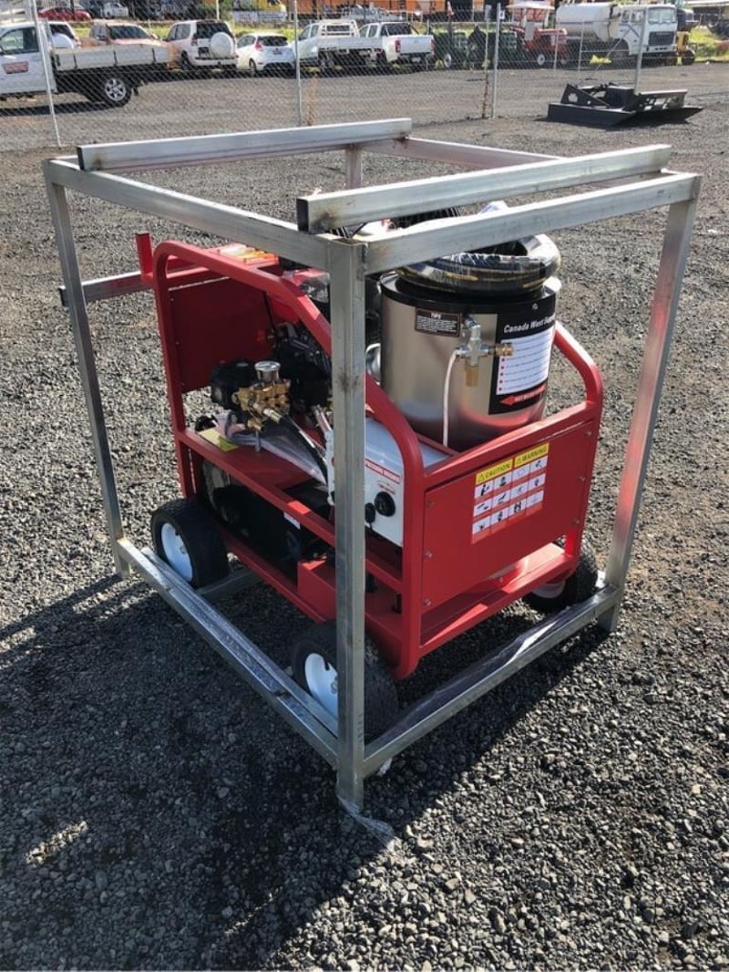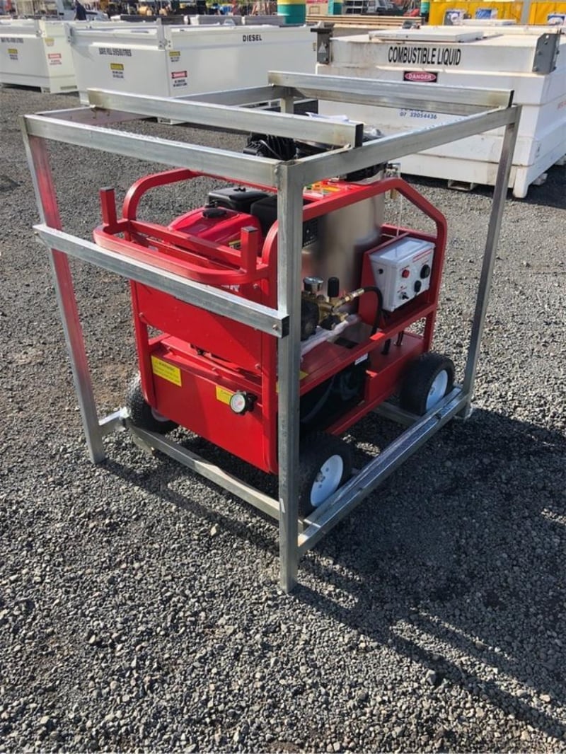 Unused Heated Pressure Washer / Water Blaster, 3600PSI, Key Start, Diesel Fired Burner, Various Spray Nozzles, Lance / Gurney, Wheels, Heavy Duty Steel Frame, Work Lights, Approximate Shipping Dimensions: 1200mm L x 1290mm H x 990mm W, Approximate Weight: 275kg Location: Ipswich, QLD