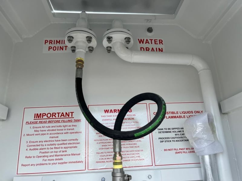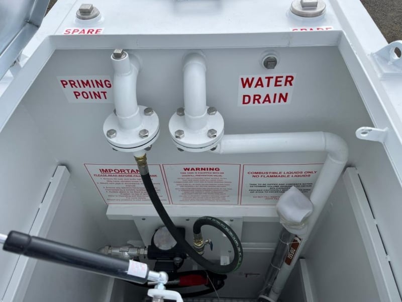 Unused 5000L Slimline Self Bunded Fuel Tank,Model: FS5 comes with Pump. Safe Fill: 5000Litres, Fork Pockets, Tank is constructed to AS1692-2006 & AS1940-2017, Shipping Dimensions: 2950mm L x 1140mm W x 2520mm H. Empty Weight: 1850ks. Serial No: FS525041502 Location: Dubbo, NSW