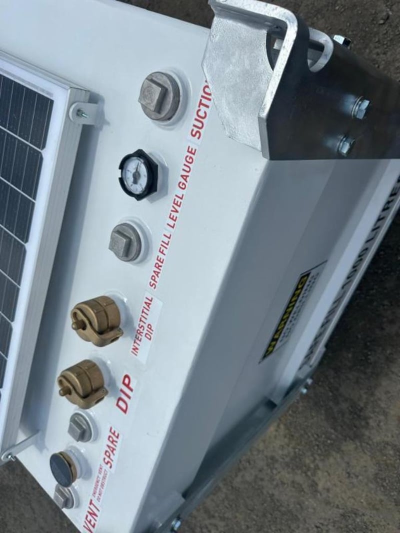 Unused 1000 Litre Bunded Fuel Storage Cube / Tank with Solar Powered Pump, Model: G1 Comes with Solar Panels, Hose, Nozzle , Pump & Meter, Safe Fill: 1000 Litres, Fork Pockets Galvanized Lifting Lugs, TARE: 690kg, Approximate Dimensions: 1642mm L x 1102mm W x 1280mm H Serial No: G125092003 Location: Dubbo, NSW