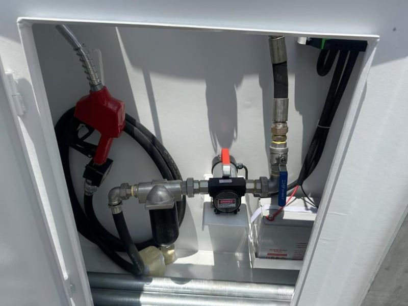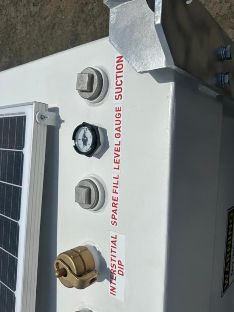 Unused 1000 Litre Bunded Fuel Storage Cube / Tank with Solar Powered Pump, Model: G1 Comes with Solar Panels, Hose, Nozzle , Pump & Meter, Safe Fill: 1000 Litres, Fork Pockets Galvanized Lifting Lugs, TARE: 690kg, Approximate Dimensions: 1642mm L x 1102mm W x 1280mm H Serial No: G125092003 Location: Shepparton, VIC