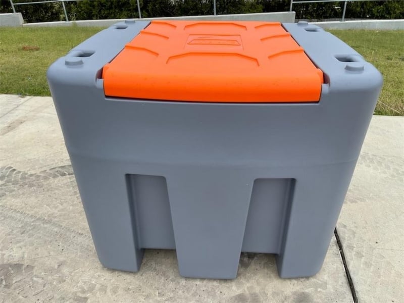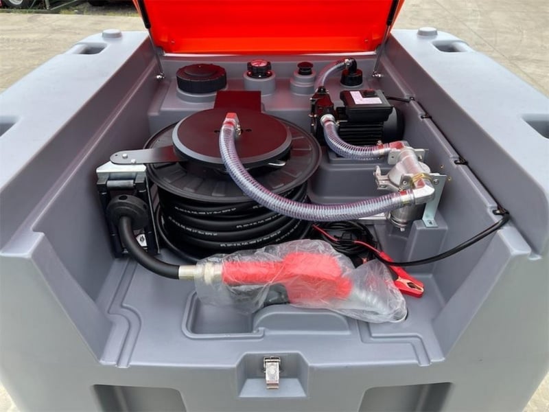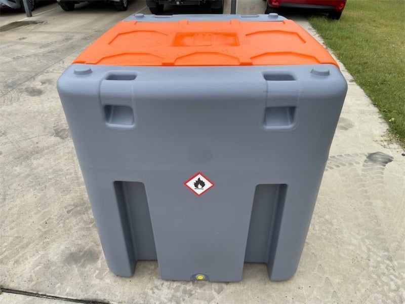 Unused 980 Litre Fuel Cube / Tank, Model: DD980, Comes with: 12V Pump - 56 l/m Flow, 10m hose /hose Reel with automatic shut off Nozzle, Lockable lid, Fork Pockets, Approximate Shipping Dimensions: 1140mm L x 1280mm W x 1110mm H, Approximate Weight: 128kg, Location: Shepparton, VIC