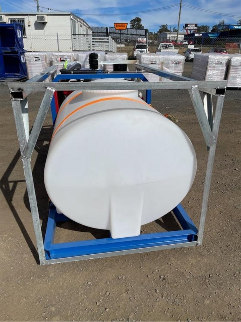 Unused Heated Pressure Washer / Water Blaster with Tank, 3600PSI, Key Start, Diesel Fired Burner, Various Spray Nozzles, Lance / Gurney, Skid Mounted with Fork Pockets, Heavy Duty Steel Frame, Work Lights, Approximate Shipping Dimensions: 2220mm L x 1240mm H x 1140mm W, Approximate Weight: 350kg Location: Shepparton, VIC