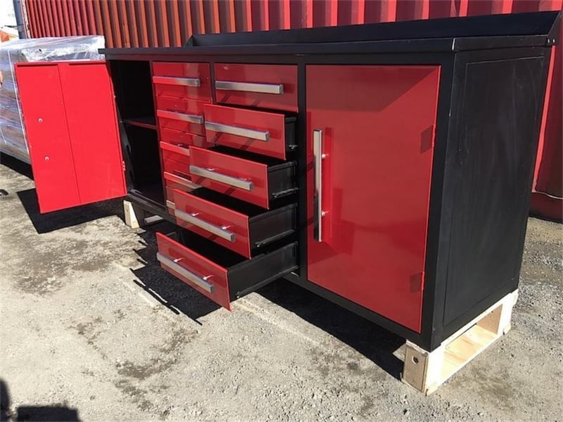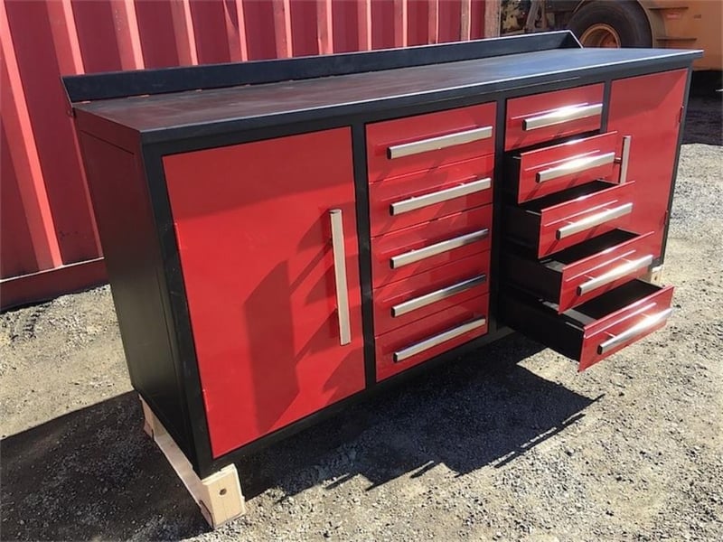 Unused Workshop bench, with 10 drawers & 2 large storage compartments, 50Kgs capacity per drawer, Approximate Shipping Dimensions: 2200mm L x 630mm W x 1000mm H, Approximate Weight: 210kg Location: Muchea, Perth WA