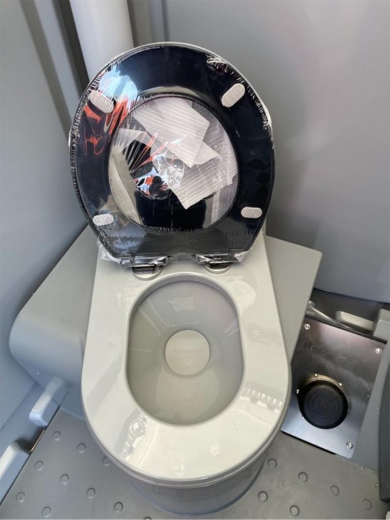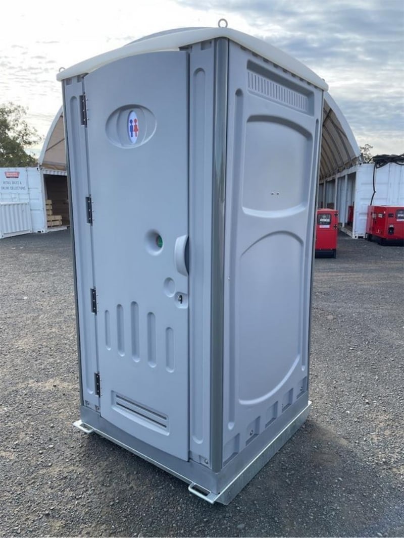 Unused Fresh Water Portaloo, with Hand Basin, Mirror, Steel Skid Base, Foot pumps for Flush & Hand Basin, Shipping Dimensions: 1120mm Wide x 1200mm Long x 2240mm H, Empty Weight: 132Kgs Location: Shepparton, VIC