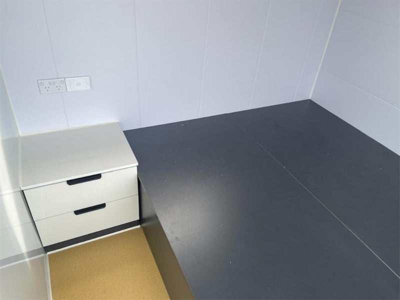 Unused 6m Accommodation Pod, Comes with Shower, Toilet, Sink, Base for Bed, Various Cupboards / Storage, Shipping Dimensions: 5900mm Long x 2206mm Wide x 2300mm High, Weight: 2070Kgs, Toilet, WELS Registration Number: L07047, Efficiency Star Rating 4, Water Consumption Full Flush 4.5 L / Half Flush 3.1 L, Nominal Average Flush: 3.4L, Tap Equipment, WELS Registration Number: T38665, Water Efficiency Star rating: 5, Water Consumption 6L/min, Shower, WELS Registration Number: S17370, Water Shower with Highest Nominal Flow rate - Efficiency Star rating: 3 & Water Consumption 9L/min, Showerhead with lowest nominal flow rate - Efficiency Star rating: 5 & Water Consumption 6L/min, ** Note: Photos to be used as a guide only - Unit does not come wired – customer must engage a licensed electrician to supply & install all wiring & components to Australian Standards - this includes switches, Lights & sockets