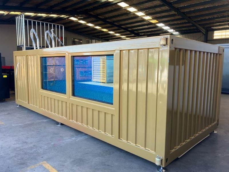 Unused 20ft Container Style Swimming pool, Comes with Pump, Adjustable feet, Hand rails, Ladder, Shipping Dimensions: 5800mm L x 1600mm H x 2400mm W Approximate weight : 2900kgs Location: Dubbo, NSW