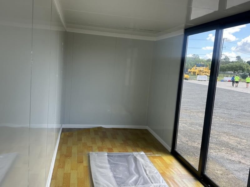 20ft Open Plan Office / Accommodation (Grey) Comes with: Sliding door, Fly Screens, Unit is Open plan, Shipping Dimensions: Width 2250mm, Length 5850mm, Height 2520mm, Weight: 1,460kgs ** Note: Photos to be used as a guide only - Unit does not come wired – customer must engage a licensed electrician to supply & install all wiring & components to Australian Standards - this includes switches, lights & sockets