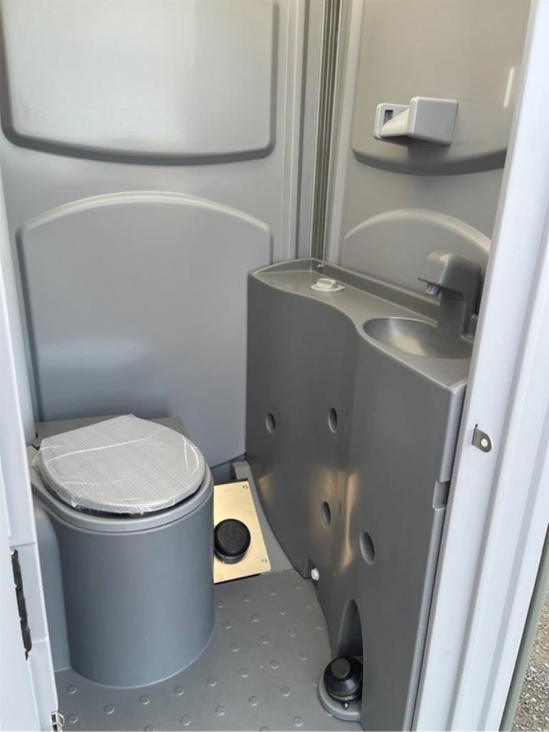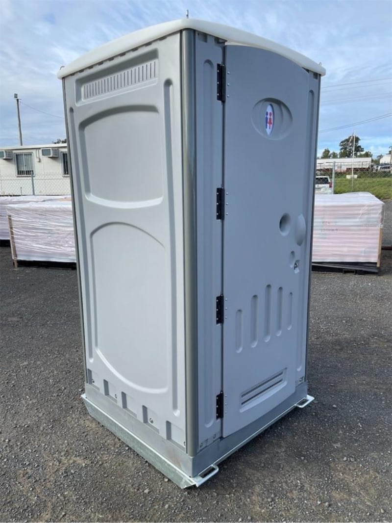 Unused Fresh Water Portaloo, with Hand Basin, Mirror, Steel Skid Base, Foot pumps for Flush & Hand Basin, Shipping Dimensions: 1120mm Wide x 1200mm Long x 2240mm H, Empty Weight: 132Kgs Location: Toowoomba, QLD