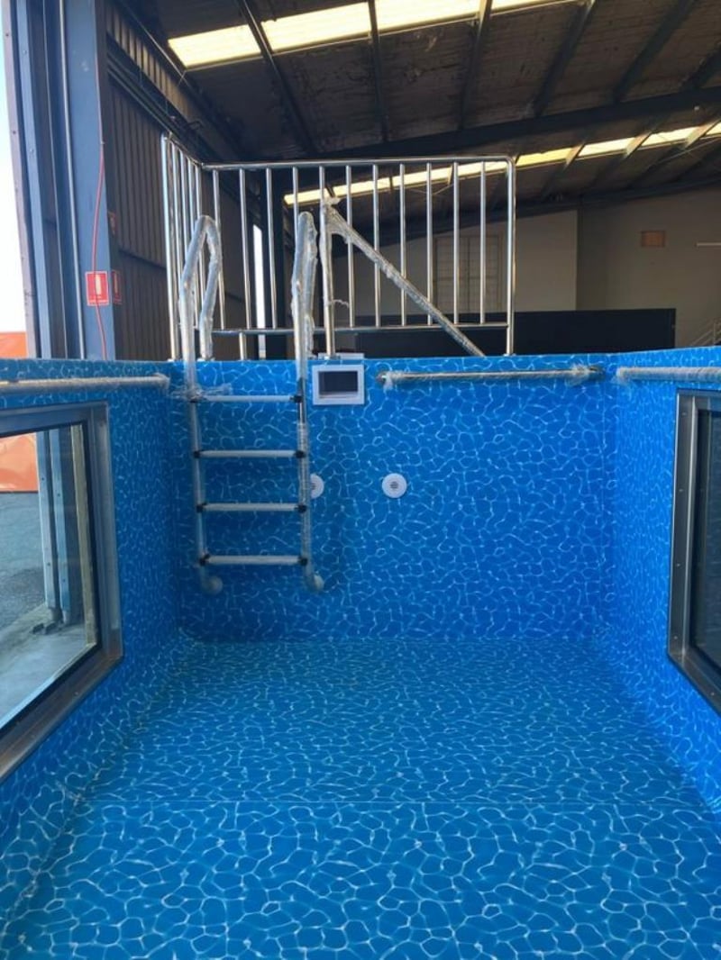 Unused 20ft Container Style Swimming pool, Comes with Pump, Adjustable feet, Hand rails, Ladder, Shipping Dimensions: 5800mm L x 1600mm H x 2400mm W Approximate weight : 2900kgs Location: Toowoomba, QLD