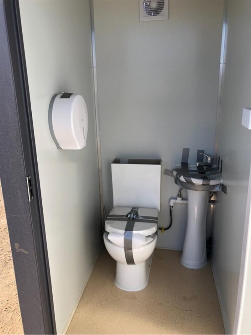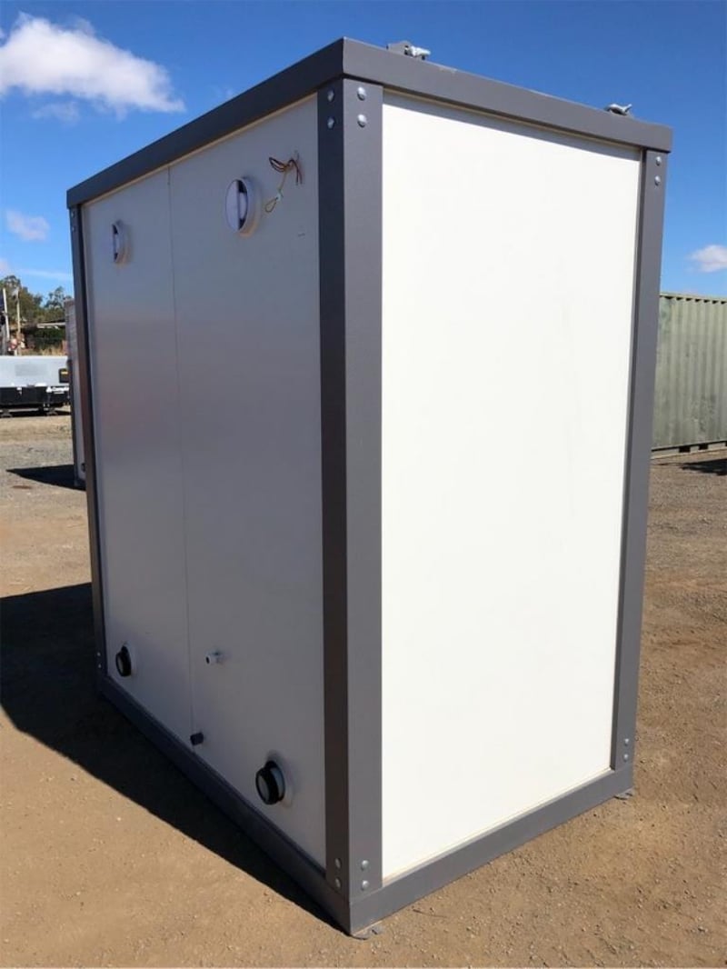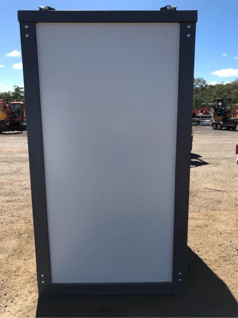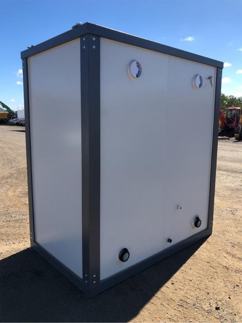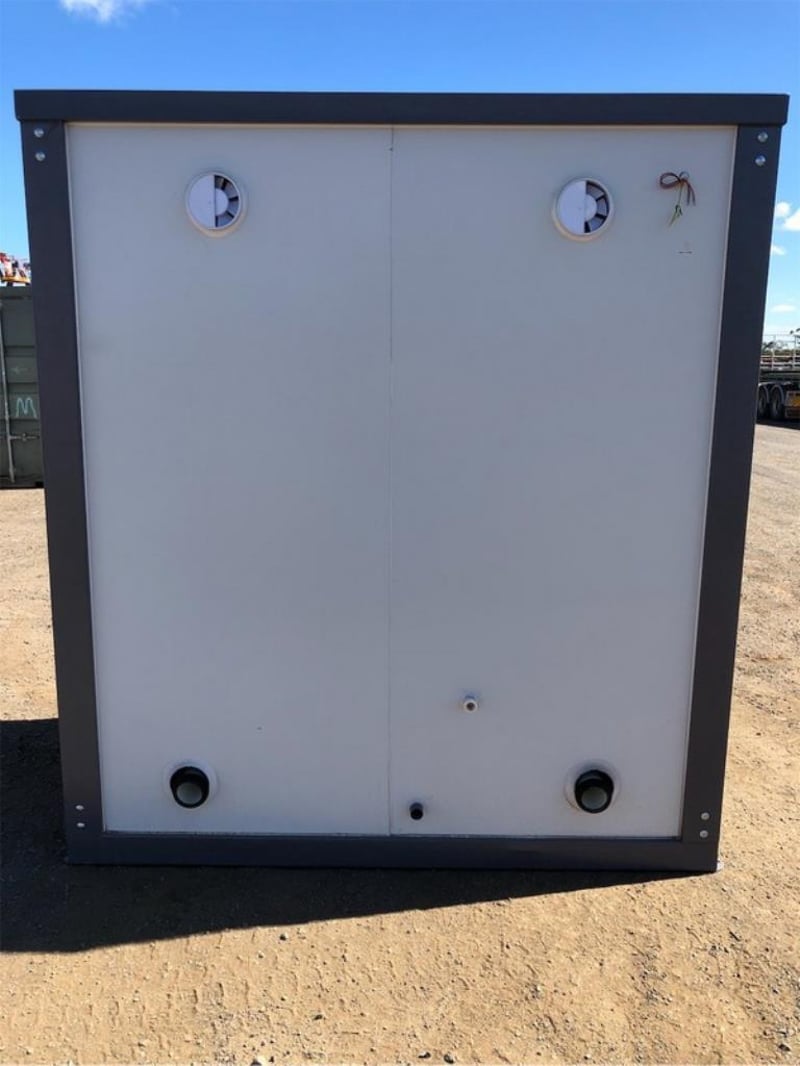 Unused Double Toilet Block, 2 x Separate Cubicles, with sink, toilet, extractor fan, Toilet, WELS Registration Number: L07047, Efficiency Star Rating 4, Water Consumption Full Flush 4.5 L / Half Flush 3.1 L, Nominal Average Flush: 3.4L, Bathroom Tap Equipment, WELS Registration Number: T38665, Water Efficiency Star rating: 5, Water Consumption 6L/min, Approximate Shipping Dimensions: 2160mm L x 1300mm W x 2360mm H, Approximate Weight: 490kg, ** Note: Photos to be used as a guide only - Unit does not come wired – customer must engage a licensed electrician to supply & install all wiring & components to Australian Standards - this includes switches, Lights & sockets