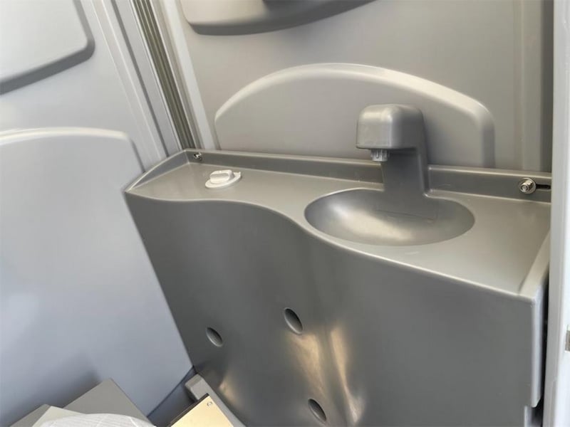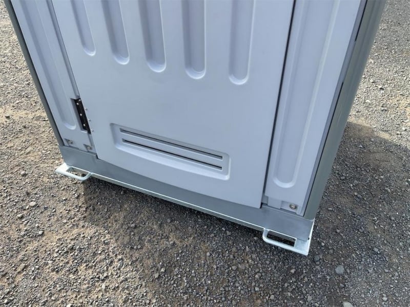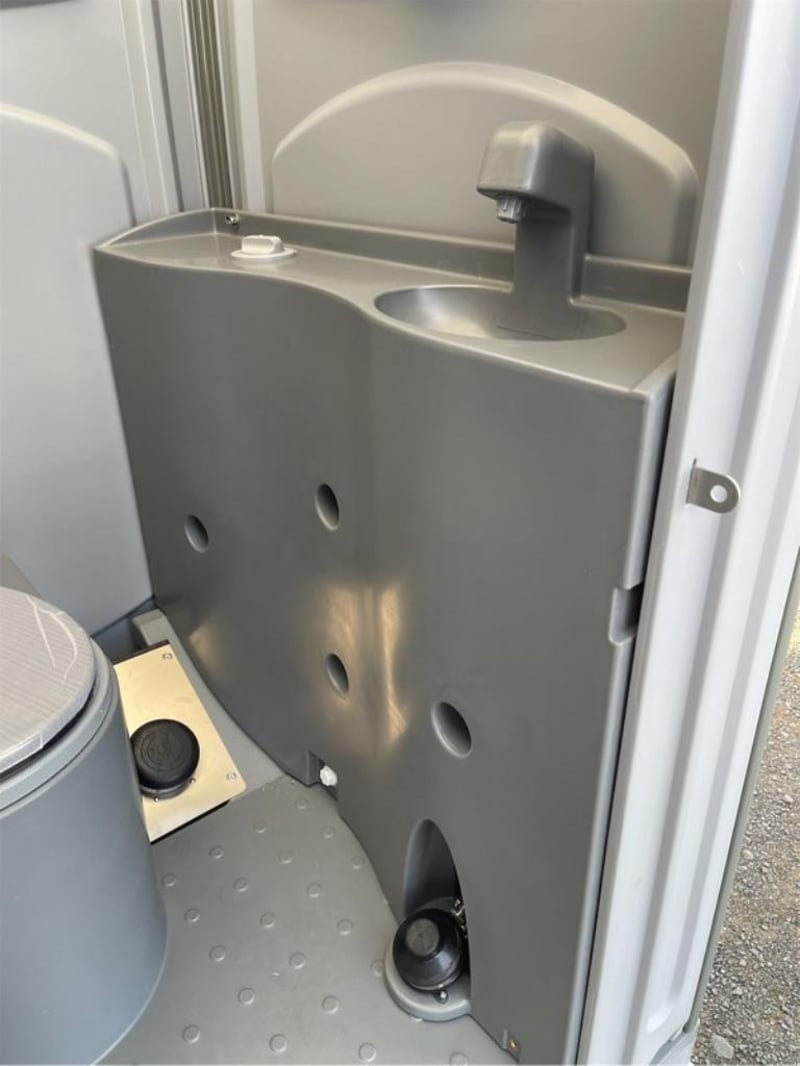 Unused Fresh Water Portaloo, with Hand Basin, Mirror, Steel Skid Base, Foot pumps for Flush & Hand Basin, Shipping Dimensions: 1120mm Wide x 1200mm Long x 2240mm H, Empty Weight: 132Kgs Location: Muchea, Perth WA