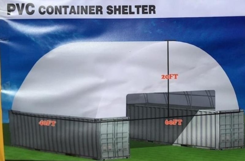 Unused Heavy Duty 60ft x 40ft Container Shelter, Model C604020S, 60ft Wide x 40ft Long x 20ft high, Double trussed frame & tarp, Heavy duty PVC fabric, galvanised tube frame, Approximate Shipping dimensions: 3320mm L x 1130mm W x 1650mm H, Approximate Weight: 1760kg Location: Muchea, Perth WA