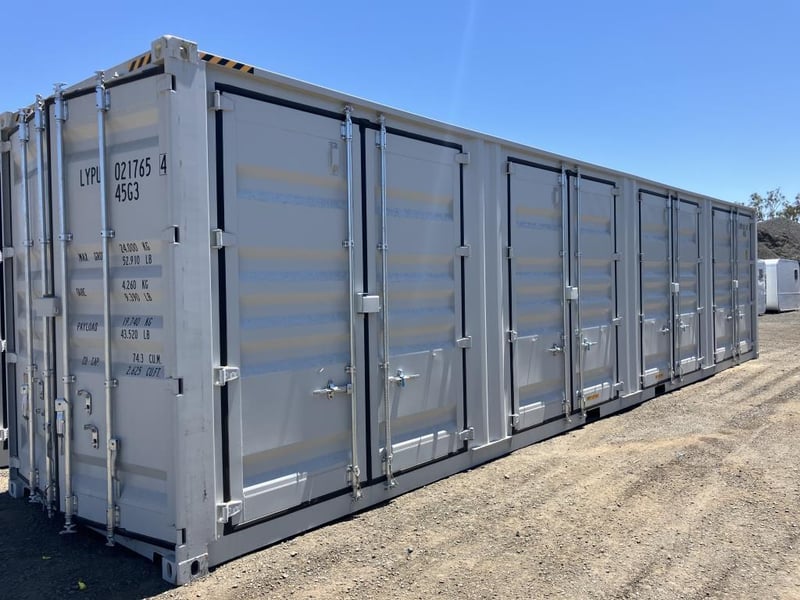 Unused 40ft High Cube Side Opening Container, With Forks Pockets, 4 side doors on one side, Container no: LYPU0227781, Date of Manufacture: 10/2025, TARE: 4260 Kgs, comes with CSC plate, next maintenance inspection due: 10/2030 Location: Muchea, Perth WA
