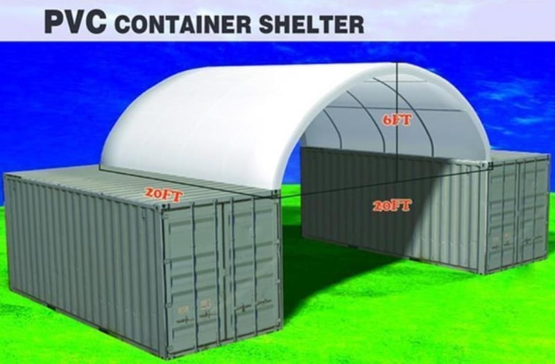 Unused Heavy duty 20ft Container Shelter, Model: C2020, 20ft wide x 20ft long x 6ft 6in high container shelter, heavy duty PVC fabric, galvanised tube frame, Approximate Shipping dimensions: 1930mm L x 740mm W x 340mm H, Approximate Weight: 220kg Location: Shepparton, VIC