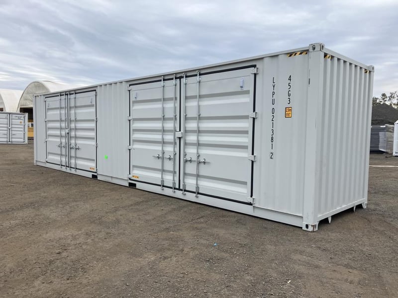 Unused 40ft High Cube 2 Door Side Opening Container, With Forks Pockets, 2 Large side doors on one side, Doors Dimensions: Approximately 4m Wide x 2.5m High, Container no: LYPU0220663, Date of manufacture: 09/2025, TARE: 4370 Kgs, comes with CSC plate, next maintenance inspection due: 09/2030, Location: Shepparton, VIC