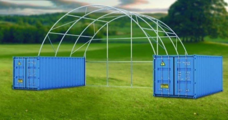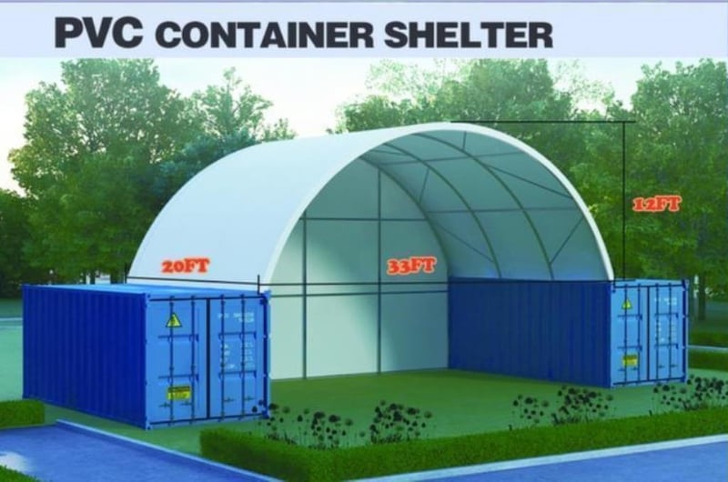 Unused Heavy duty 20ft Container Shelter with End Wall, Model: C3320E, 20ft long x 33ft wide x 12ft high, Heavy duty PVC fabric, galvanised tube frame, Approximate Shipping Dimensions: 2830mm L x 750mm W x 745mm H, Approximate Weight: 730Kgs Location: Dubbo, NSW
