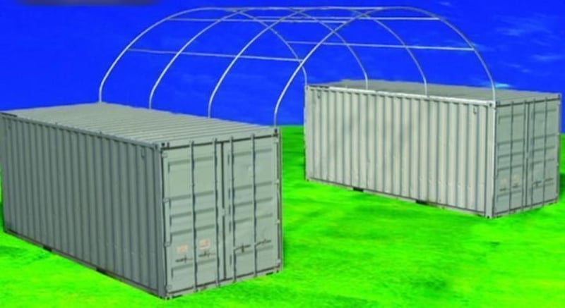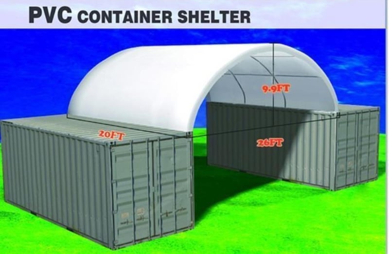 Unused Heavy Duty 20ft Container Shelter No End Wall, Model: C2620 - 26ft Wide, 20ft long x 26ft wide x 9ft 9in high, Heavy duty PVC fabric, Galvanised tube frame, Shipping Dimensions: 2685mm L x 740mm W x 460mm H Weight: 355kgs Location: Dubbo, NSW