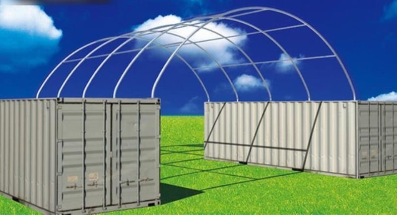 Unused Heavy duty 20ft Container Shelter with End Wall, Model: C2020H, 20ft wide x 20ft long x 6ft 6in high container shelter, heavy duty PVC fabric, galvanised tube frame, Approximate Shipping Dimensions: 1930mm L x 740mm W x 360mm H, Approximate Weight: 226kg Location: Dubbo, NSW