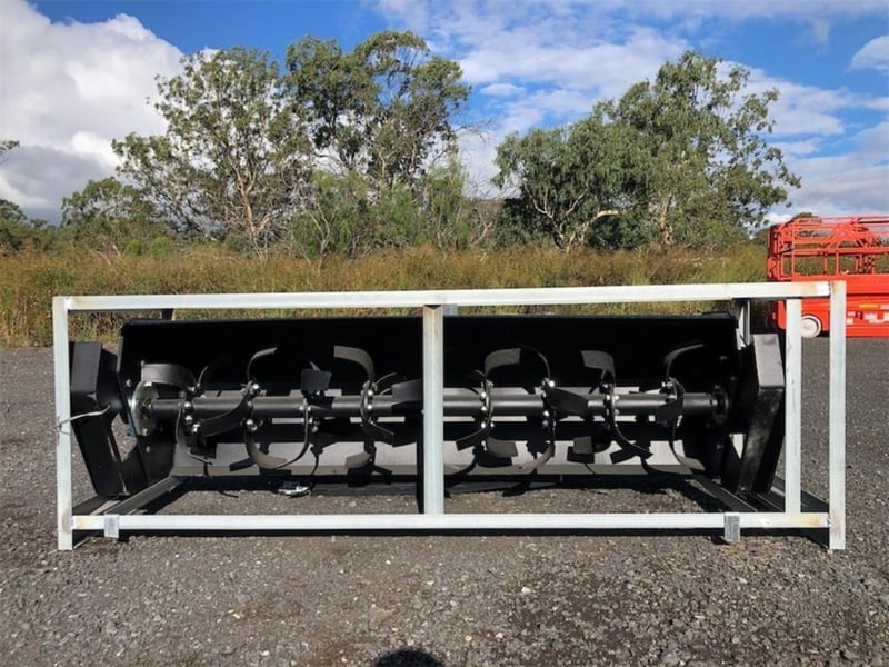 Unused Tiller Attachment, To Suit Skid Steer, 1850mm Wide, Operating Pressure: 16-21 MPA, Scarifying Width: 1520mm, Scarifying Depth - Adjustable from 0mm to 120mm, Approximate Shipping Dimensions: 2180mm L x 740mm W x 720mm H, Approximate Weight: 360kg Location: Toowoomba, QLD