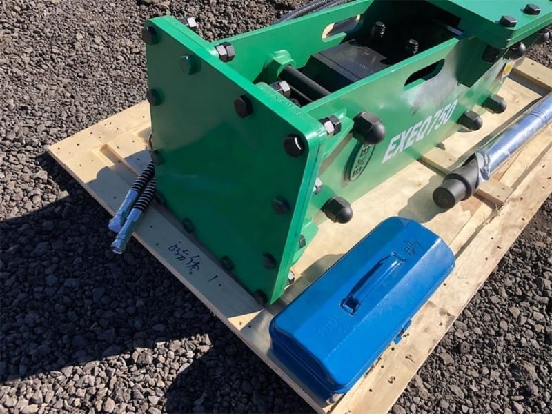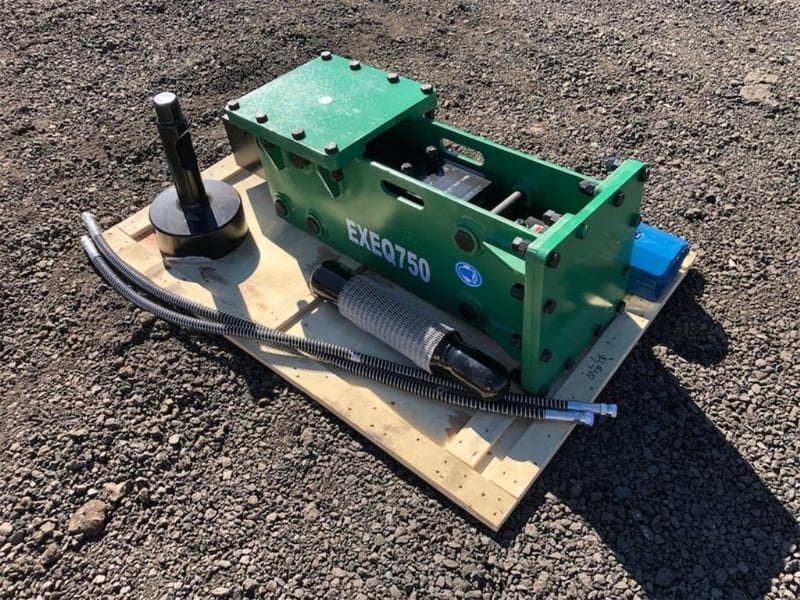 Unused Hydraulic Skid Steer / Excavator Post Driver, Model: EXEQ750P, To Suit both Skid Steers and/or 6-8 Ton Excavators, Side mount for Skid Steers / Top Mount for Excavators, Can be used as both Post Driver & Rock Breaker, Operating Pressure: 120-170 bar, Hydraulic Flow: 50-90 Litres per minute, Frequency - 400-800 bpm, Comes with 1 x Post Driver & 2 x Chisels, Each unit comes with a separate heavy duty mounting plate for skid steers, To be attached by buyer, Approximate plate dimensions 1180mm x 480mm, Weight: 375kg,Location: Toowoomba, QLD