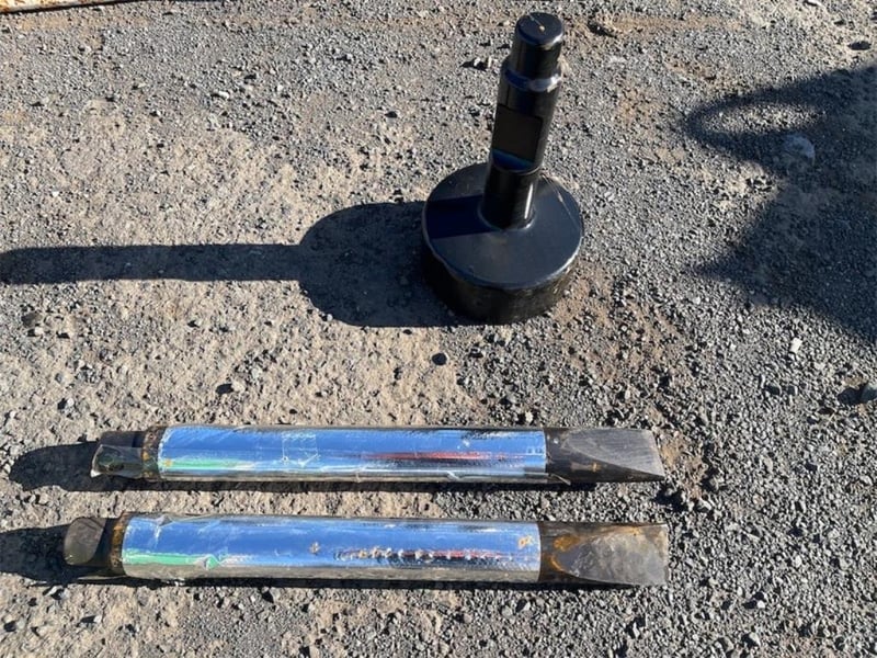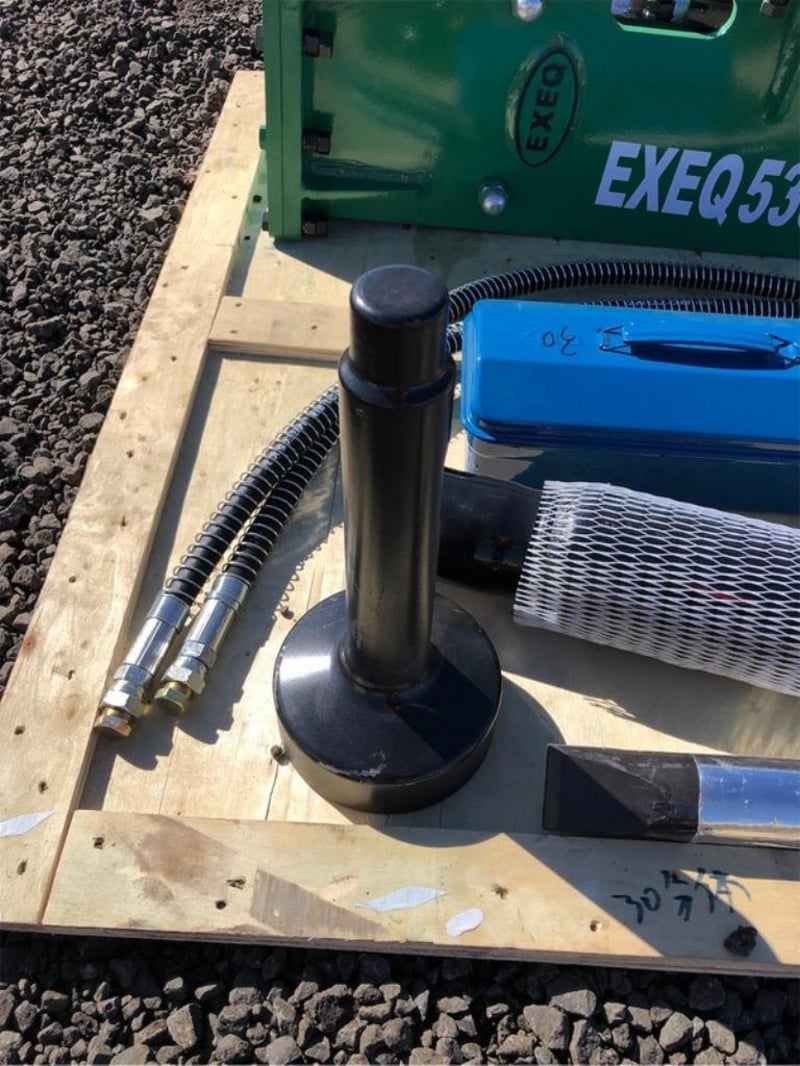 Unused Hydraulic Skid Steer / Excavator Post Driver, Model: EXEQ530P, To Suit both Skid Steers and/or 2.5-4 Ton Excavators, Side mount for Skid Steers / Top Mount for Excavators, Can be used as both Post Driver & Rock Breaker, Operating Pressure: 90-120 bar, Hydraulic Flow: 25-50 Litres per minute, Frequency - 600-1000 bpm, Comes with 1 x Post Driver & 2 x Chisels, Each unit comes with a separate heavy duty mounting plate for skid steers, To be attached by buyer, Approximate plate dimensions 1180mm x 480mm, Weight: 180kg, Location: Toowoomba, QLD