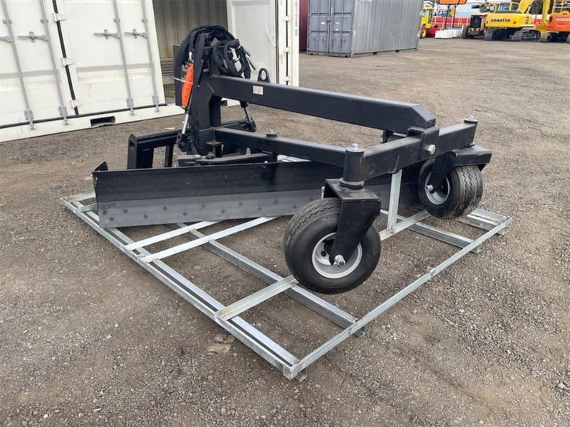 Unused Grader Attachment to Suit Skid Steer, Blade Width 2.42m Rotation angle 25°, Incline Angle: 24°, Shipping Dimensions: 2590mm L x 2160mm W x 1365mm H, Weight: 640Kgs, Location: Ipswich, QLD