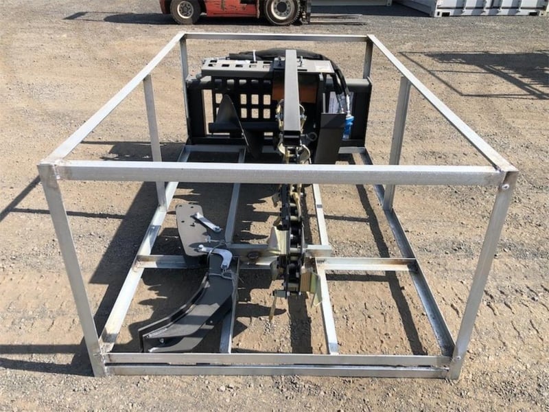 Unused Trencher Attachment for Skid Steer Loader, digging Width: 200mm, Digging Depth : 900mm, Required flow: 50-75 L/Min, Approximate Shipping Dimensions: 1900mm L x 1240mm W x 790mm H, Approximate Weight: 360kg Location: Ipswich, QLD