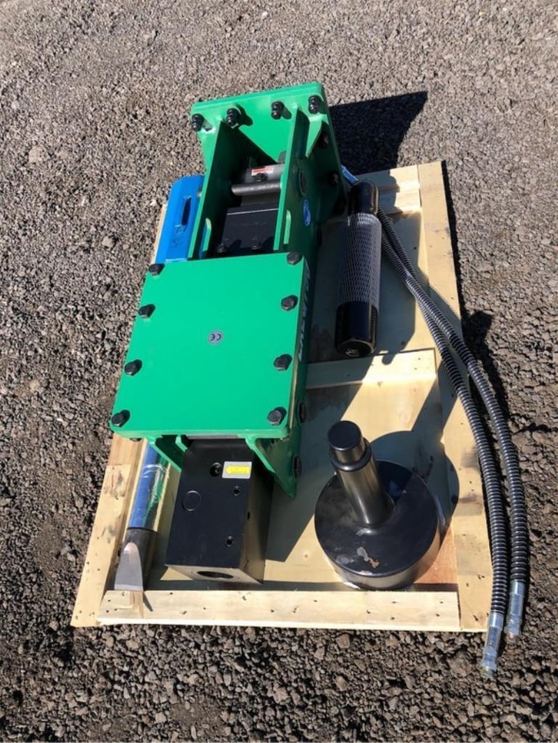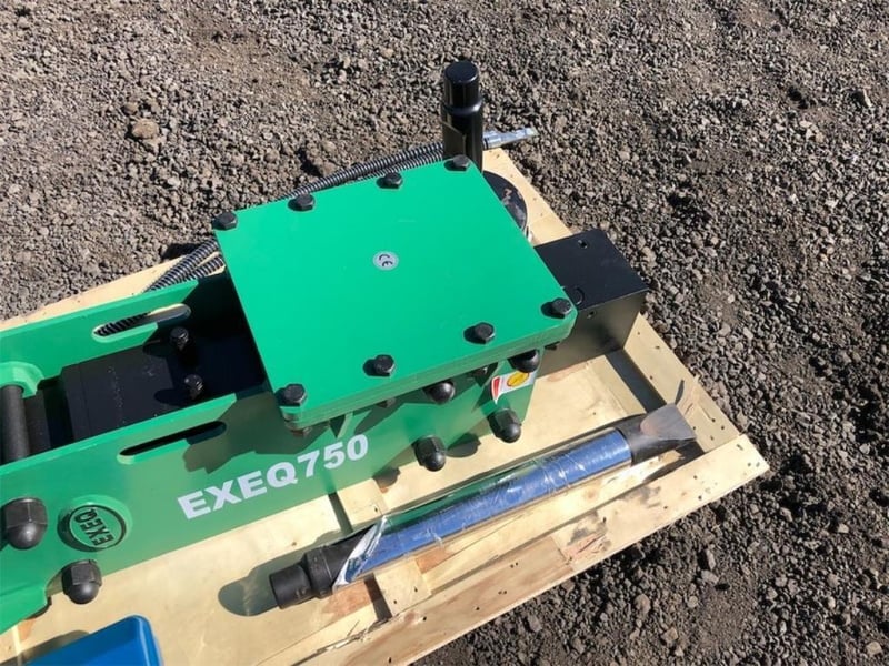 Unused Hydraulic Skid Steer / Excavator Post Driver, Model: EXEQ750P, To Suit both Skid Steers and/or 6-8 Ton Excavators, Side mount for Skid Steers / Top Mount for Excavators, Can be used as both Post Driver & Rock Breaker, Operating Pressure: 120-170 bar, Hydraulic Flow: 50-90 Litres per minute, Frequency - 400-800 bpm, Comes with 1 x Post Driver & 2 x Chisels, Each unit comes with a separate heavy duty mounting plate for skid steers, To be attached by buyer, Approximate plate dimensions 1180mm x 480mm, Weight: 375kg,Location: Ipswich, QLD