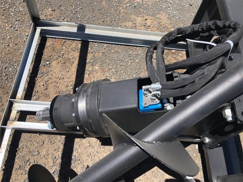 Unused Auger Drive Attachment, To Suit Skid Steer, Comes with 1 x 12 Inch Auger, Required Operating Flow: 50-75 L/min, Operating Pressure: 16MPa, Approximate Shipping Dimensions: 1210mm L x 1110mm W x 810mm H, Approximate Weight: 240kg Location: Shepparton, VIC