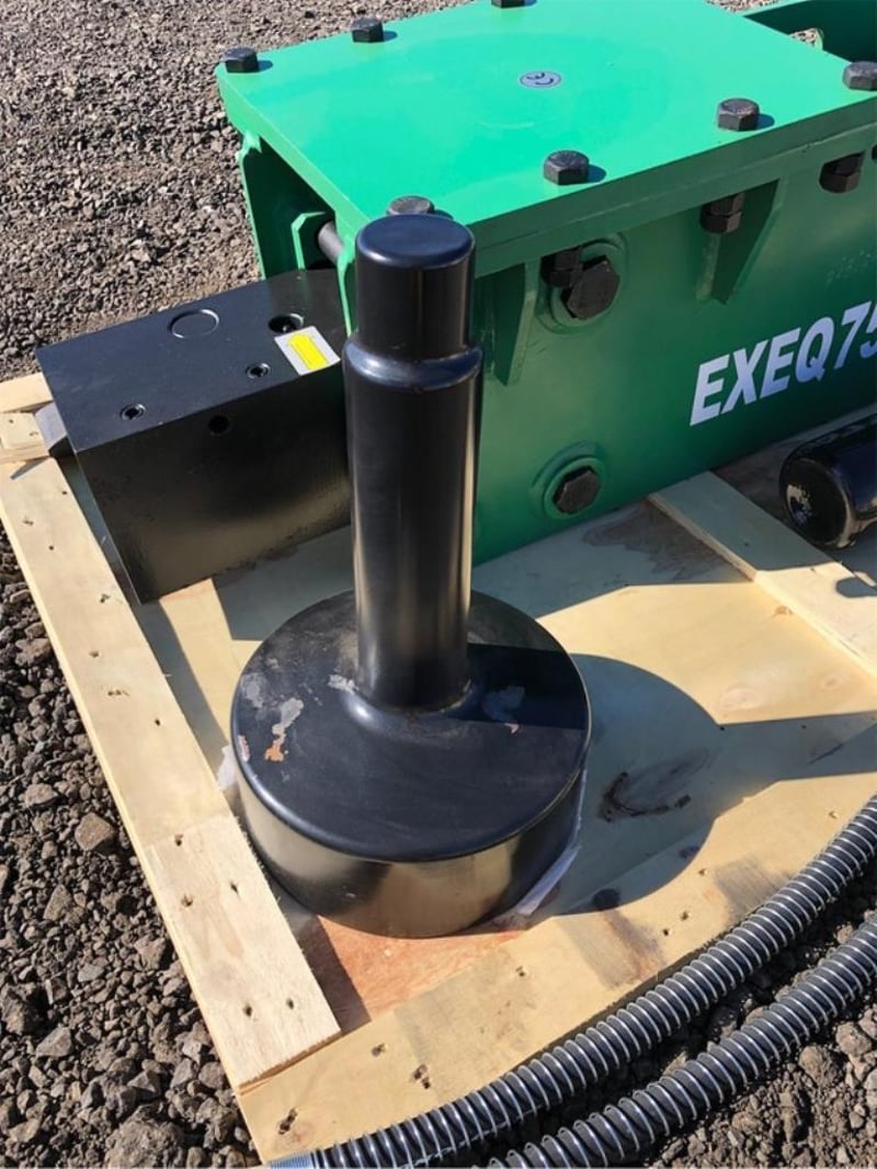 Unused Hydraulic Skid Steer / Excavator Post Driver, Model: EXEQ750P, To Suit both Skid Steers and/or 6-8 Ton Excavators, Side mount for Skid Steers / Top Mount for Excavators, Can be used as both Post Driver & Rock Breaker, Operating Pressure: 120-170 bar, Hydraulic Flow: 50-90 Litres per minute, Frequency - 400-800 bpm, Comes with 1 x Post Driver & 2 x Chisels, Each unit comes with a separate heavy duty mounting plate for skid steers, To be attached by buyer, Approximate plate dimensions 1180mm x 480mm, Weight: 375kg,
