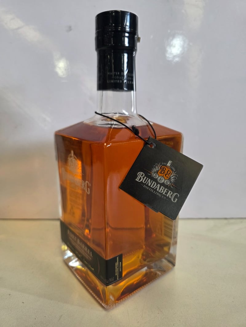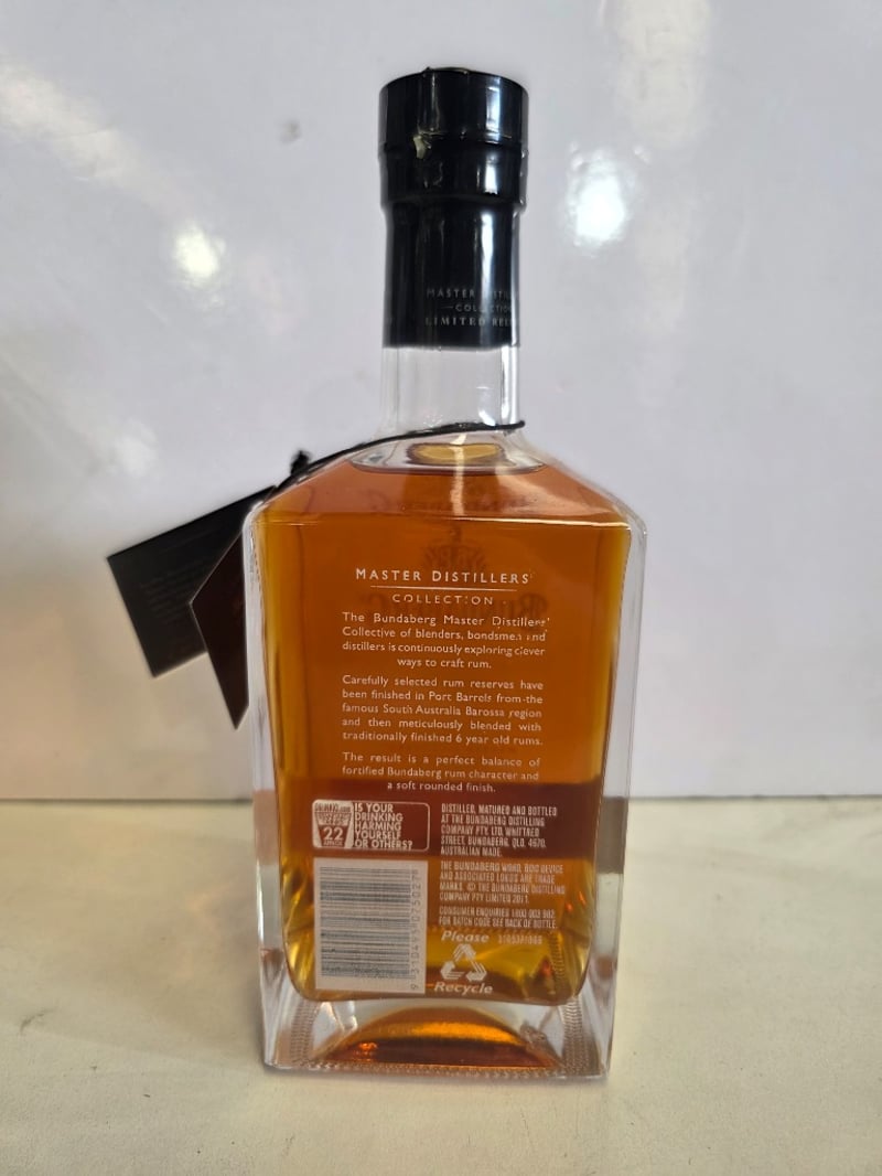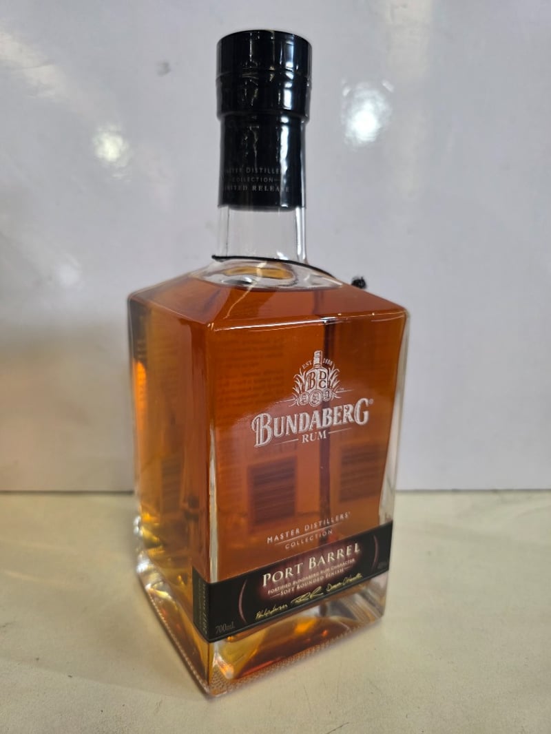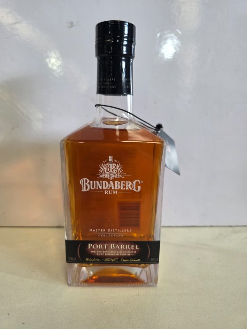 Bundaberg Rum Master Distillers' Collection Port Barrel, 700ml bottle, 40% ABV. This premium Australian rum features fortified Bundaberg rum character with a soft rounded finish, achieved through careful selection of rum reserves finished in Port Barrels from South Australia's Barossa region. The spirit represents a perfect balance of Bundaberg's characteristic flavour profile and refined port barrel maturation. Presented in original packaging with black capsule seal and branded hang tag. Limited release from the Master Distillers' Collection series. Bottle appears unopened and in excellent display condition.