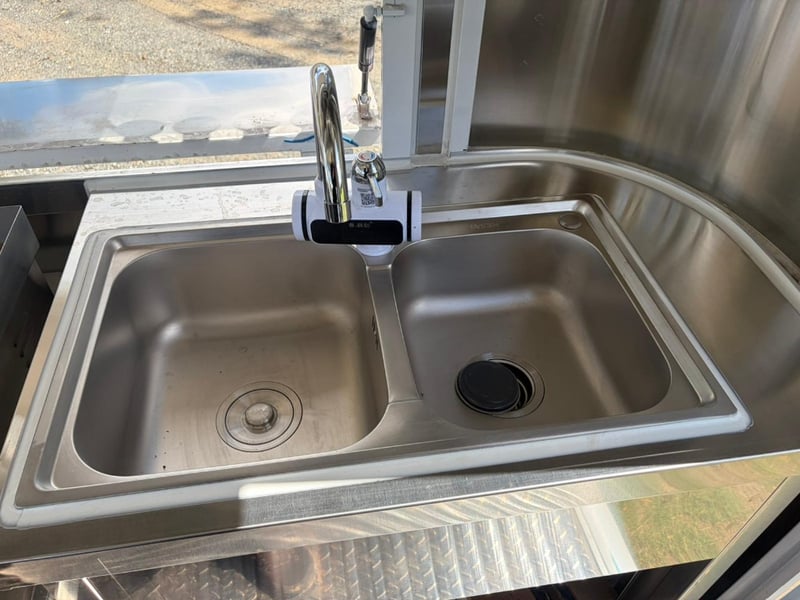 · Double bowl sink with hot and cold water and additional sink hand wash or rinsing sink with
