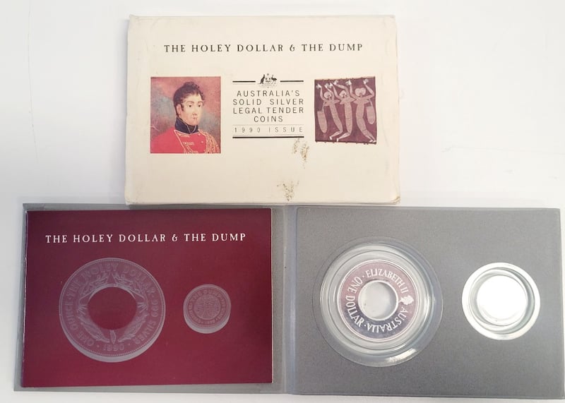 THE HOLY DOLLAR AND THE DUMP Commemorative 1990 Issue Solid Silver Legal Tender Coin Set Featuring Australia'S Iconic Holey Dollar And Dump Coins. Condition: Good - Refer To Images 488600+22
