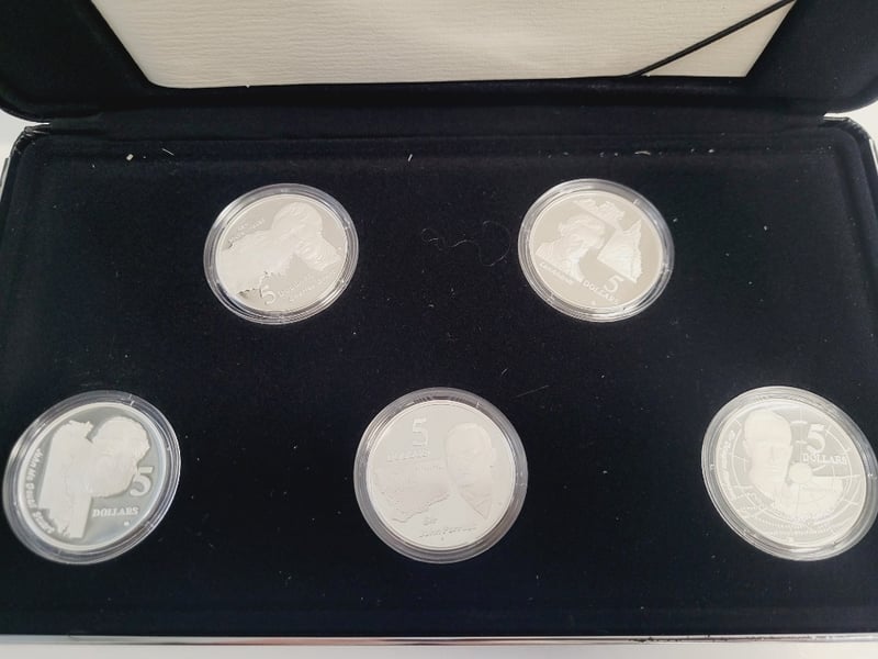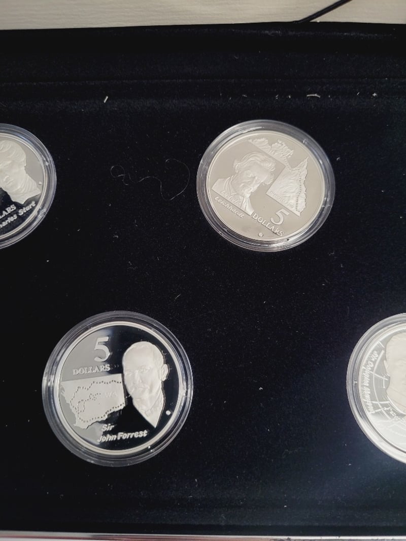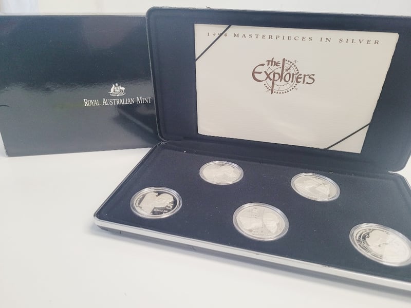 1994 MASTERPIECES IN SILVER - THE EXPLORERS COLLECTION BY ROYAL AUSTRALIAN MINT SET Prestigious Silver Proof Coin Collection Featuring "The Explorers" Theme From The Royal Australian Mint'S 1994 Masterpieces In Silver Series. The Set Comprises Multiple Sterling Silver Proof Coins In Protective Capsules, Presented In Official Presentation Case With Certificate Of Authenticity. Coins Depict Notable Australian Explorers With Detailed Reverse Designs And Denominations Including $5 And $15 Pieces. The Collection Showcases Exceptional Numismatic Craftsmanship With Mirror-Field Proof Condition: Good - Refer To Images 488600+24