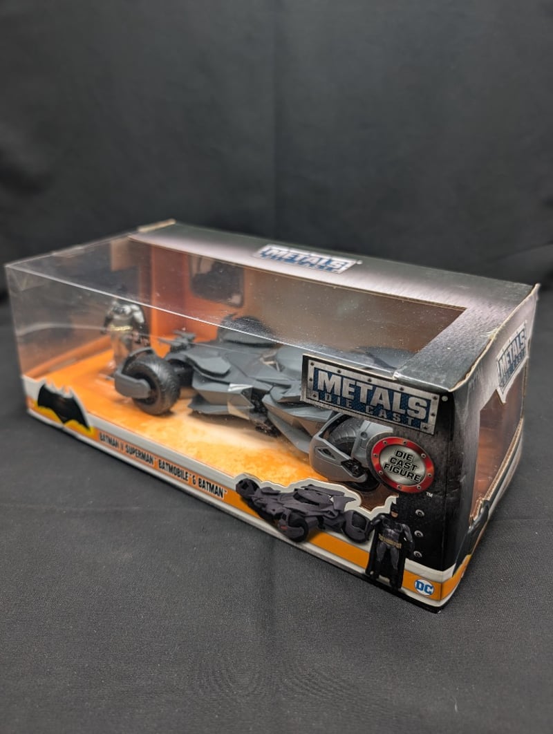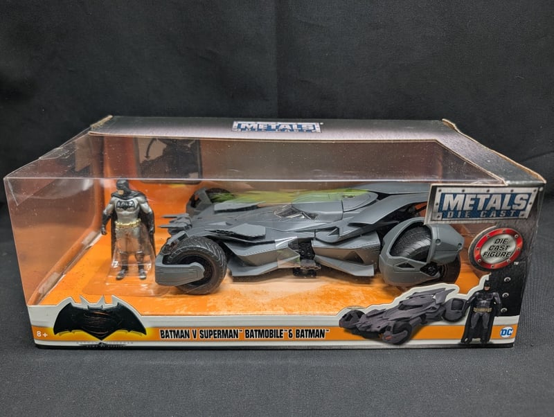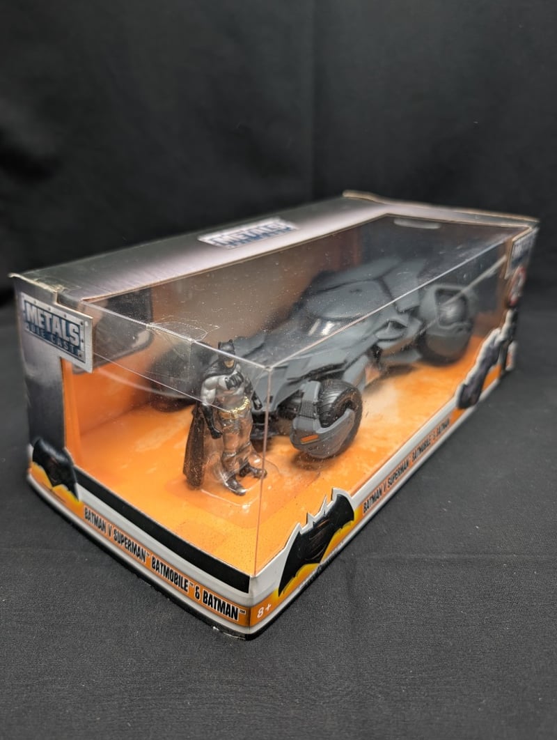 1:24 METALS BATMAN V SUPERMAN BATMOBILE & BATMAN DIECAST MODEL CAR AND FIGUREItem Size: Height: 35cm, Width: 35cm, Depth: 35cm, Weight: 2KgCondition: Good - Refer To Images584533+9