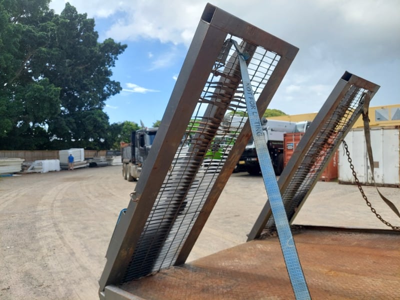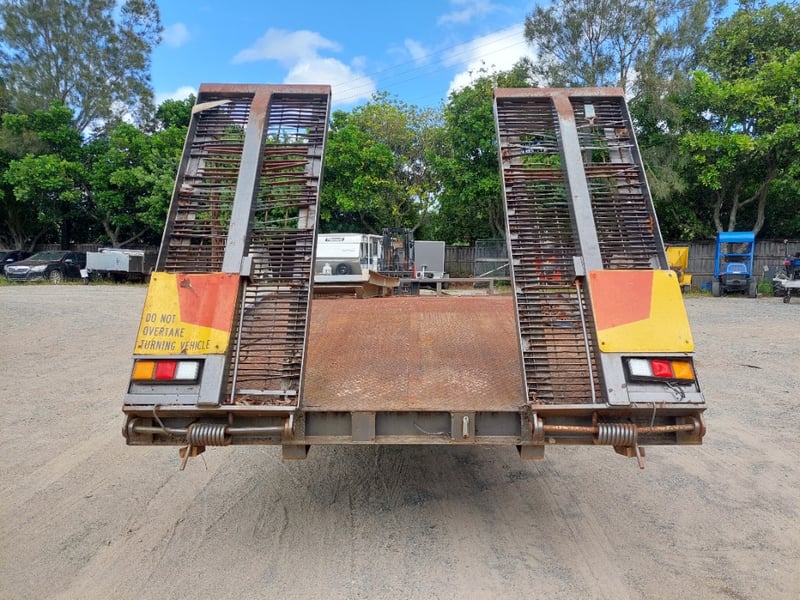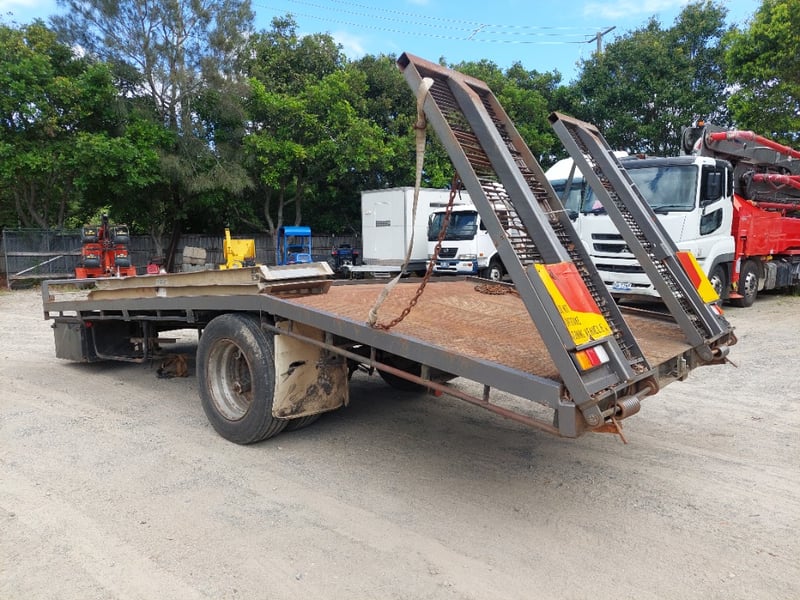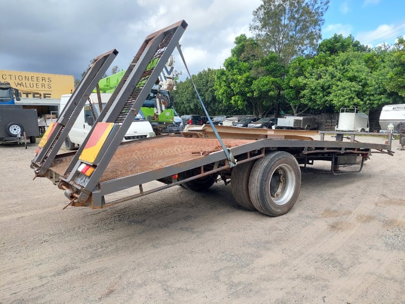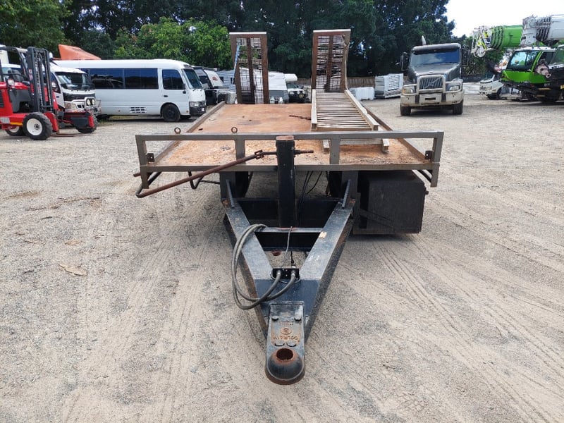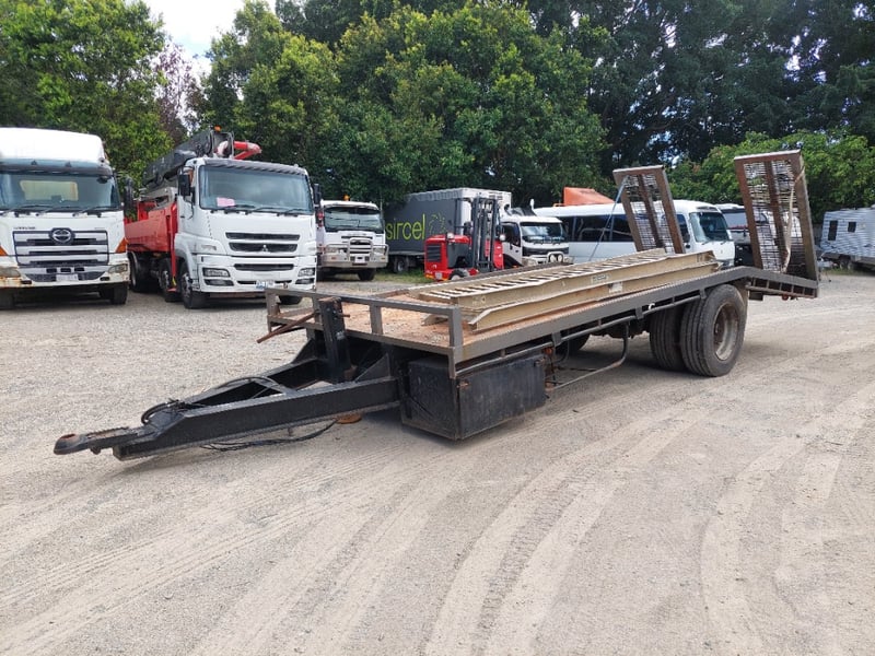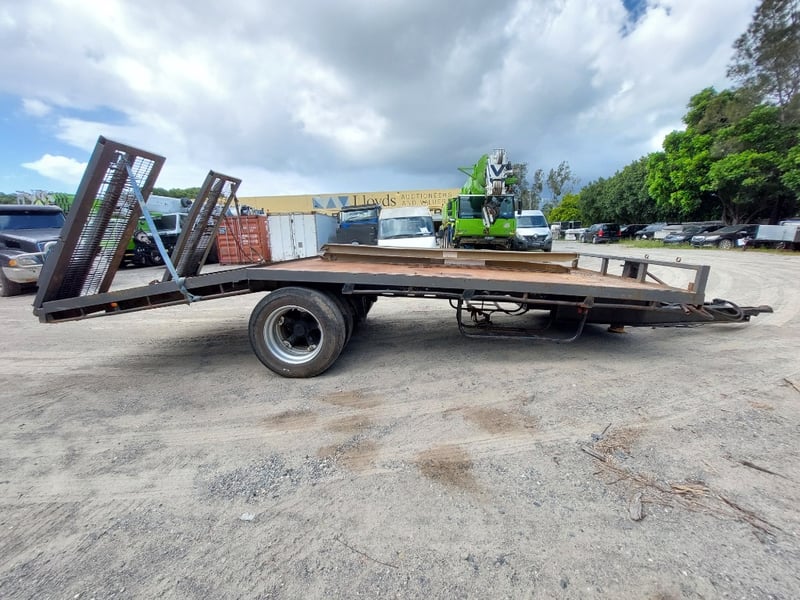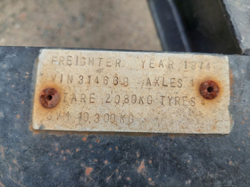 Tag Trailer Year: 1974 Make: Freighter Model: Unknown Body: Flat Tray Trailer Colour: Black Configuration: Single Axle Suspension: Leaf Spring Description: Includes Ladders, Ramps Chassis No.: 31466B ATM: 10300kg Tare: 2080kg Trailer length: ~8.50m Trailer width: ~2.44m No Key Carrara