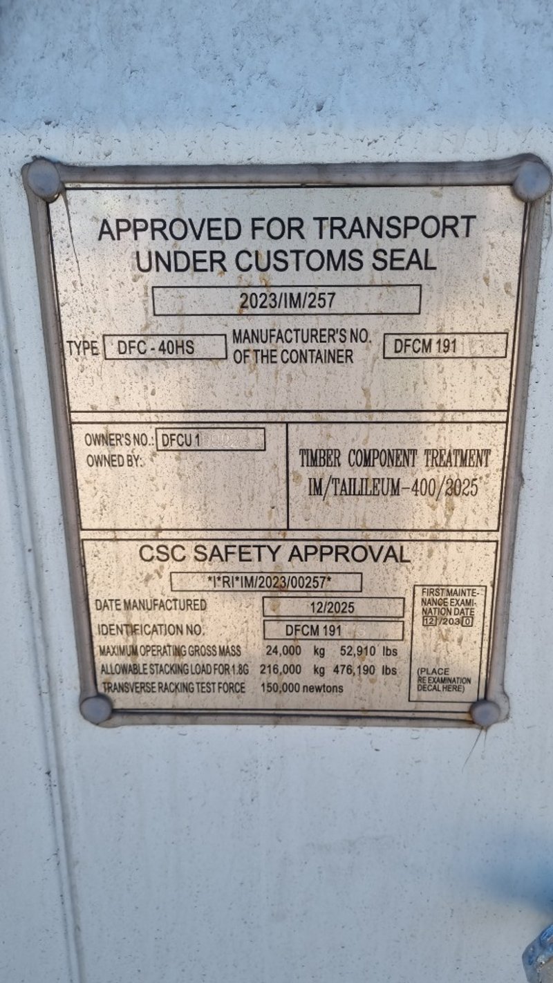 FACTORY DIRECT** 2026 CTN Storage 40ft HQ Container 40HQ new container ,one side multi-door,4 doorsFEATURES:- Four Side Opening Doors - One End Opening Door- Unused- Tare: 4,260Kg- Payload: 19,740Kg- Max Gross: 24,000KgModel: DFCU1699234Approx Dimensions: 2.9mm H x 2.42m W x 12.04m LPlease note: minor scuffs and marks may be evident *** PLEASE NOTE Collections must occur within 7 days of Auction Ending*** Note: OEM images and VIDEOS shown are for illustration purposes only, and used as a guide only, inspections highly recommended.