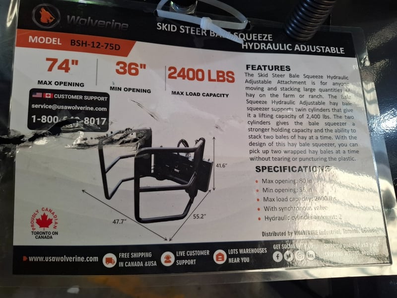 FACTORY DIRECT ** Unused WOLVERINE, Bale Squeeze Hydraulic Adjustable - BSH-12-75D